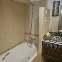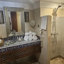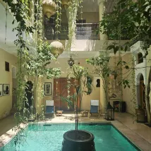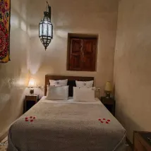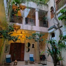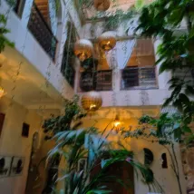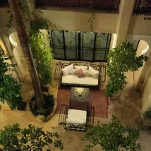 Изысканный и красивый риад в медине, в тихом уголке. У нас был полулюкс на троих, двухуровневый, единственный минус - достаточно крутая лестница на второй этаж, где находится двуспальная кровать. Есть кондиционер, телевизор, фен. Нет чайника, холодильника (кому это важно). Белье чистое, постель удобная. Завтрак шведский стол, всё вкусно. Также в ресторане можно обедать и ужинать по меню. Бассейн маленький, неглубокий, поплавать в нем не получится, но охладиться в жару можно. У бассейна есть полотенца. Много зон для отдыха. До ближайшей парковки минут 10 пешком, мы позвонили в риад, и за нами пришёл человек с тележкой, который помог довезти наши чемоданы, и показал дорогу в риад. Вообще всё в этом месте доставляет эстетическое удовольствие, рекомендую!!!