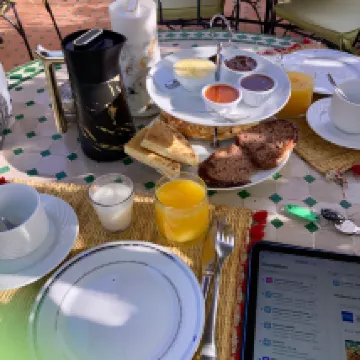 Très belle expérience dans le riad kech soul Tout était conforme à l’annonce ! le plus la cuisine excellente nous avons passé commande à la dernière minute mais la cuisinière (dont j’ai oublié le prénom )nous a gâté encore un grand merci pour ses bons plats : un régal. Petit déjeuner parfait la terrasse et le petit bassin idéal pour se rafraîchir à la tombée de la nuit et top pour y déjeuner ou dîner. Localisation parfaite personnel calme souriant et toujours disponible je recommande vivement merci pour votre bienveillance et accueil et au plaisir de revenir