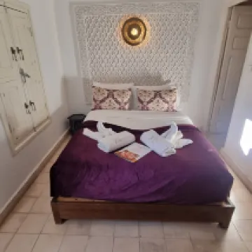 Riad muy deteriorado, las paredes estaban rajadas y tenían varios agujeros. La cama incómoda, hacía un calor impresionante y el aire acondicionado te deba directo a la cama, por lo que te morías de calor o te morías de frío. Sábanas malas y toallas regular. El desayuno regular. El personal super amable. La ubicación si tu plan es ir a recorrer la zona turística no es buena, está lejos de todo y el barrio es peligroso.