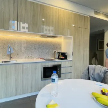 入住的房間感覺比之前住過的其他Meriton酒店的房型要稍微小一點,浴室裏沒有提前備好洗髮水,雖然問題解決了,但還是希望這些基本用品能在入住時就準備妥當,避免給客人帶來不便。