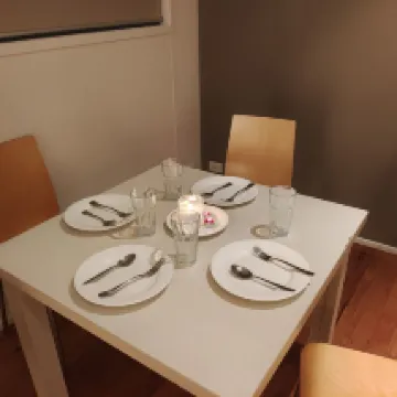 Poor internet, actually no internet connection because the cabin is located far from the reception. The sofa was broken and one blanket smell like urine.