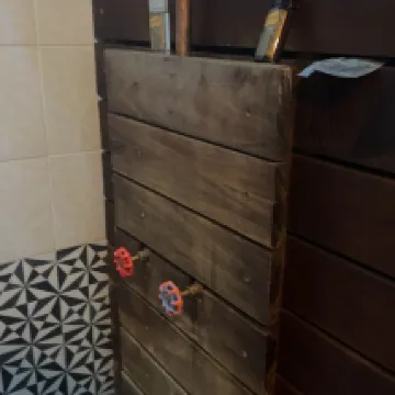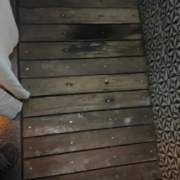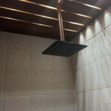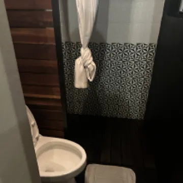En los baños la ducha está al mismo nivel del resto del piso del baño y el piso de la ducha es en madera. Luego, cada vez que uno se ducha el agua sale por todo el baño y la madera guarda la humedad dando un olor húmedo todo el tiempo en la habitación.