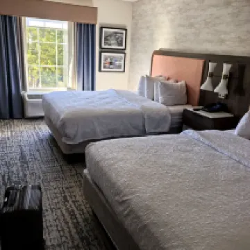 Hotel was just what we expected in a Hampton Inn property- clean, friendly, and well-maintained. Desk clerk gave us a great list of local restaurants and circled the best ones to go to. Breakfast was standard but appreciated. Coffee 24/7. Great sights and location. Highly recommended.