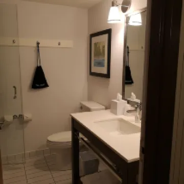 Front desk staff was pleasant, helpful and checked us in without any issue. Free parking onsite. Room was large, very clean, had a seating area and bathroom was perfect - spacious, shiny clean and beautiful shower. Quiet hotel, great sleep and ate buffet breakfast at the restaurant on site the next morning- a bargain at $12.99 each. Lots of hot and cold food choices, juices and coffee/tea.