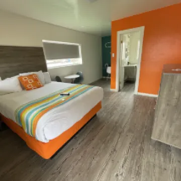 房間很乾凈,對比days inn 這類的連鎖酒店好很多,房間大,乾淨很多。 我們住在後排,很安靜。 車就停在房間前,很安全。 運營的像是一家人,很友好。 對面不遠就有7/11。 小鎮9點後基本就沒有餐廳開着了。