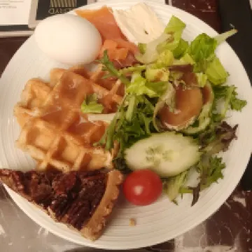 There is a Nespresso machine in the room and a kettle for tea drinkers. Breakfast buffet was amazing, and they offer a la carte option as well. Gym and sauna are available to guests.