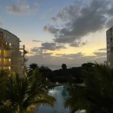 帶娃去住的,房間很大,度假酒店很舒服,泳池有室內和室外的,還有救生衣提供,小朋友玩的很開心。房間陽台就可以看到遠處的海,落日的時候特別美。打掃衞生的服務人員態度也特別好。一樓可以用微波爐,二樓有大浴場可以泡,樓上還有免費的冰塊。去海洋館還有班車接送,很方便,推薦