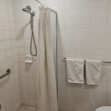 不過小缺點也有:房間看着有點舊,空調噪音稍微大了點,浴室瓷磚沒那麼白;還有電視尺寸跟枱麪不太搭,放着有點傾斜。但這些都是小問題,畢竟臨時訂房能有這條件已經很滿足啦,作為中轉落腳的選擇很合適~