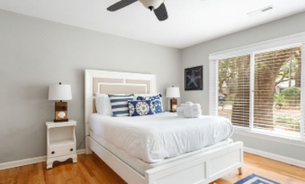 Get the authentic coastal living experience in our 3bd/2ba ranch-style home, “The High House” - with 1700 sqft, our space would be the perfect size for groups/families of up to eight people. To make things easier for you, this property also features on-site parking, so finding a parking spot won’t be an issue here! The first thing you’ll notice as you pull into our home is the bright red front door inviting you into the warm atmosphere of our space. As you walk inside, you will find yourself in the combined living/dining area - where you and your group can kick back after a fun-filled day with a movie/show on the HD flatscreen TV or share a meal at our 8-top dining table.