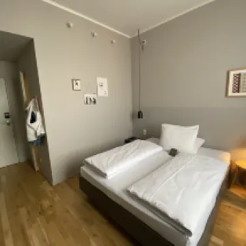 這家酒店非常漂亮而且現代。你也不能抱怨價格,但我們發現遺憾的是,登記入住時房間裡沒有一瓶水作為“歡迎”,但你必須在接待處買一瓶。然而,我們還必須抱怨的是早餐。不幸的是沒有太多選擇。沒有什麼像香腸這樣的。薩拉米、火腿、里昂納等等。除此之外,住宿非常安靜舒適。員工也都非常友好和樂於助人。感謝那!