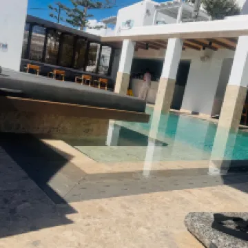 Esperienza meravigliosa da ripetere. Struttura situata in una zona tranquilla con una vista mozzafiato sulla spiaggia di Agios stefanos e sul porto nuovo di Mikonos. Stanze pulitissime, personale educato, accogliente, disponibile sempre ad ogni richiesta. Ci hanno servito dei piatti gournes davvero cucinati ottimamente. Ci torneremo senz'altro. Consigliatissimo!!!!!