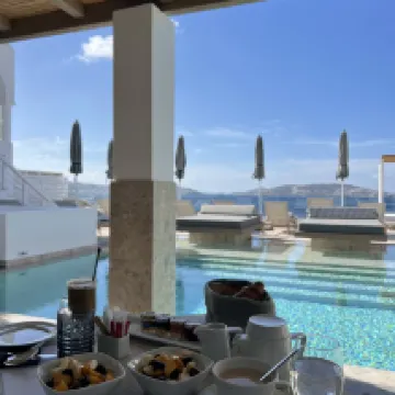 Superbe hôtel avec une des plus belle vue de l'île à proximité du vieux port. Les chambres sont spacieuses et avec une literie irréprochable et chacune avec une vue imprenable et de plus chaque terrasse à son espace jacuzzi/piscine un luxe. La piscine de l'hôtel est exceptionnelle avec une équipe au top qui répond au moindre demande de notre part et fais en sorte de toujours nous satisfaire tout comme à la réception/conciergerie. Un management hors pair. A refaire vraiment dans cet hôtel merci pour ces 5 jours passé chez vous. Amicalement Ludovic Peigné