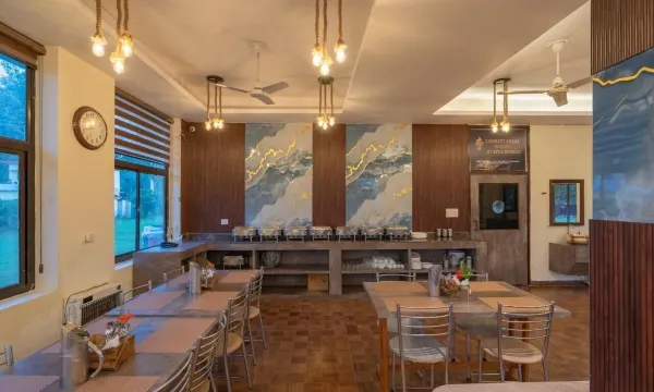 環境位置: 酒店位於Dhela村,緊鄰Jim Corbett國家公園,周圍自然景觀豐富,空氣清新,遠離城市喧囂,適合放鬆身心。距離Ramnagar火車站約15.7公里,最近機場為Pantnagar機場,旅客可搭乘巴士或計程車抵達。周邊景點眾多,如Corbett瀑布、Garjia Devi廟等,方便遊客探索。整體環境寧靜,綠意盎然,為追求自然與安靜的旅客提供理想選擇。