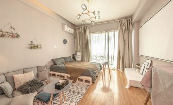 房間環境整體還不錯,蠻乾淨整齊的,還有投影可以看,老闆阿姨人挺好的,離地鐵很近,交通方便,樓下有很多的小吃,旅遊來住的話挺推薦的