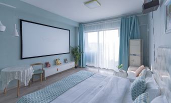 床軟乎乎的,巨幕投影正對大床,窩着看電影太舒服。房東禮貌認真對待顧客,樓下就是小吃街,情侶短途遊選這家準沒錯。