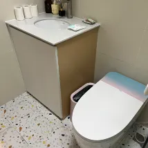 The hotel is less than a 10-minute walk from Exit 6 of the South Station subway, located in a commercial area with all the amenities you could need. The lobby is beautiful, there's 24-hour security, and you need a key card for the elevators. The room is filled with childlike charm, which my kids absolutely loved. The owner even thoughtfully prepared disposable toiletries, cartoon slippers for bathing, and a children's toilet seat. The pink projector also adds to the fun and has great clarity, pairing perfectly with the 100-inch high-definition screen – it's just too perfect! Especially for this price [chuckle].