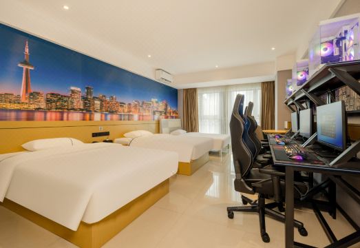 入住酒店大廳看起來很舒適,前台小姐姐服務也很好,房間的床品好舒服,房間物品齊全,網速很快,玩遊戲很流暢房間採光不錯,房間舒適衞生,前台服務好,很慶幸選擇到這一家電競酒店,開車的話樓下有停車場很方便,下次有機會還來