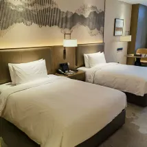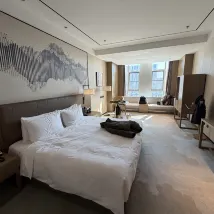 訂的家庭房很滿意,床夠大,一張1.8米,一張1.35米,房間面積大,還有書桌,方便帶大孩子。訂房間綜合考量了幾家,衹有皇冠有適合大孩子的家庭房,其他都是0.9米小床之類。感覺現在酒店能考慮到大孩子的不多,所以對房間特別滿意。房間設施不錯,衞洗麗都有,打掃也很主動,外賣服務員都及時送到房間。初一去的,當天人不算多,後面感覺入住人多了。早飯略一般了,品種該有都有,就是沒那麼多,春節期間感覺有點人手不夠,補菜品有點慢。