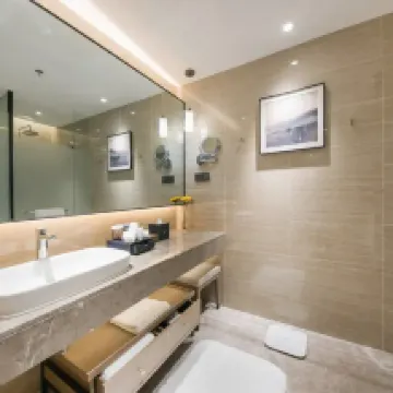 衞生間大,房間很大,房間有個大沙發,睡個孩子綽綽有餘,自助早餐,西點很好吃,一看就是酒店自己做的,草鞋餅和燒餅熱的,又脆又香,酒店周圍環境優美,離南通大劇院很近,酒店的中餐廳性價比很高