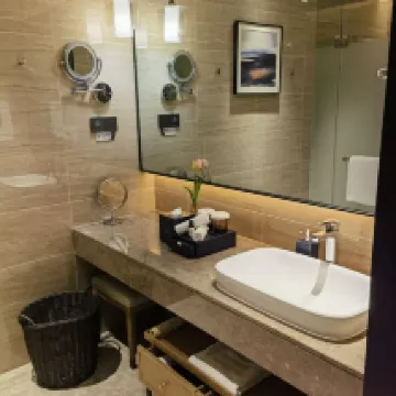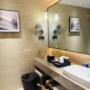 房間很大,乾淨衞生,衞生間也很大,住一家四口一點都不擁擠。早餐品類不算特別多,口味不錯。服務也很周到。