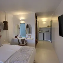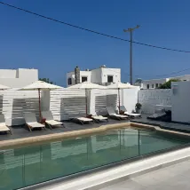 The nicest hotel EVER!! Really stunning, wow factor from when you arrive, the pool is immaculate and a great temperature (not too cold like lots of hotels!). Rooms are really clean, white, modern and the air conditioning is really good. Fridge is so cold and great for storing water / food / wine. No breakfast but 30 second walk away is a breakfast cafe, bakery and mini supermarket so couldn’t be more convenient. 5 minute walk into the centre of Naoussa. Staff were so helpful and passionate about Paros and gave some amazing recommendations. They went above and beyond for us 😊 thank you Villa Kelly!