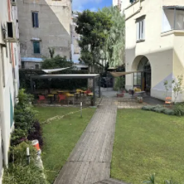 工作人員很友好,熱情好客。早餐很棒。這個地方非常漂亮、宜人,有一個獨特的花園區。對於 5 個人來說,房間有點小,而且地板有點髒。床很舒服。我推薦這家飯店,因為它的位置特別好,距離市中心比較近,步行 3 分鐘即可到達地鐵站。