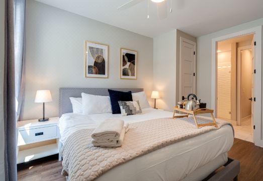 Revel in tranquility in the two spacious bedrooms, each featuring a comfortable King size bed and its own Smart flat-screen TV. The thoughtfully curated ambiance ensures a peaceful respite after a day of exploration. Additional sleeping arrangements are available, including a built-in bunk bed with twin-size mattresses and a queen-size air mattress stowed conveniently in the closet.