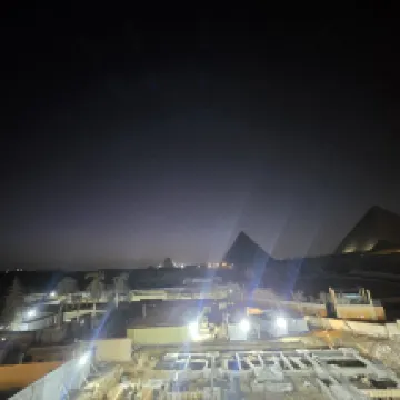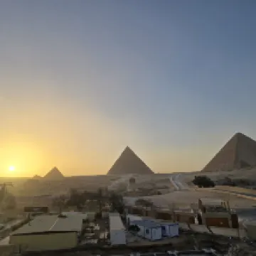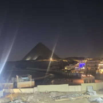 正對吉薩金字塔群跟人面獅身像景觀絕佳的飯店 連住兩晚有提供開羅機場接機服務 房間很大 老闆服務熱情還讓我能提早入住 早餐菜色豐富 有提供果汁 晚上可以到陽台一邊喝熱茶一邊看金字塔夜景 可惜的是在2026年的1/1到1/2吉薩金字塔的夜間燈光秀整修暫停 小缺點就是廁所較小 淋浴沒有蓮蓬頭 熱水很燙要先調好 還有就是隔音不好會聽到外面車輛往來的聲音 不過吉薩區算是郊區 晚上車輛不多 就是有些人在路邊講話很大聲會影響睡眠 附近還有很多金字塔景觀飯店 要小心不要走錯