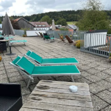 Pro und Contra ---------------------- Das Team Nach langer Anreise wurden wir von einem sehr freundlichen Team empfangen und - das wollen wir ausdrücklich hervorheben - auch weiterhin bestens umsorgt. Leider wurde der Gesamteindruck mangels Kulanz/Kompromissbereitschaft durch die Geschäftsleitung bei vorzeitiger verletzungsbedingter Abreise getrübt. Unser Vorschlag der Hälftigung und die verbliebenen 50% in die Teamkasse zu stecken wurde abgelehnt. Ein „wir freuen uns bereits auf ein baldiges Wiedersehen“ auf der Reiseabbruch-Rechnung ist purer Hohn. Gerne möchten wir trotzdem einen sachlichen Überblick zu unserem Aufenthalt geben: Preis und Leistung --------------------------- Zimmer: Die DZ Zimmer sind im Preis inkl. Frühstück im oberen Segment angesiedelt. Die Zimmer sind sauber und das Bad grundsätzlich in guten Zustand. Bad: Leider war die Dusche defekt und wurde prompt nach Meldung noch am gleichen Tag repariert. Aber - muss das der Gast feststellen? In der Dusche eine passende Wassertemperatur einzustellen gelingt nur nach langer Zeit und bei anderen Verbrauchern oder Bezug am Waschbecken steht man im Kalten oder verbrüht sich die Haut. Hier muss dringend nachgebessert werden und ist aktuell dem Preis absolut unangemessen. Bett: Die erste Nacht nach 9,5 h Anreise war gut. Aber mit weiteren Tagen stellt man fest, dass das Batt die gute Zeiten schon hinter sich hat. Man hat versucht mit einem Topper das Bett wieder aufzuwerten. Dennoch zeigt sich eine deutliche Kuhle. Dadurch sind meine Rückenschmerzen zurückgekommen. Ich möchte hier jedoch nicht soweit gehen, zu behaupten, dass dadurch auch meine Knieprobleme, die zum Abbruch der Reise geführt haben, induziert wurden. Terrasse: An dieser nagt ebenfalls deutlich der Zahn der Zeit. Dreckige Waschbetonplatten, darunter auch Gebrochenen, defekte und gerissene Sonnenschirme und eine trauriger Dachgarten mit Unkraut. Die Terrasse taugt also maximal für Raucher. Leider zum Nachteil der Nichtraucher. Diesen haben je nach Windrichtung den Qualm im Zimmer. Überhaupt macht die Grünanlage (Beete) einen ungepflegten Eindruck Licht und Schatten --------------------------- Restaurant: Die (warmen) Speisen, welche wir verköstigen durften waren durchweg sehr lecker. Deshalb haben wir uns auch nicht anderweitig umgeschaut. Zudem ist Bedienung sehr zuvorkommend. Wie gesagt ein guter Teamgeist. Dennoch sind gute Standards nicht in den ohnehin recht teuren Gerichten inkludiert. Ein Hirschgulasch kommt ohne Rotkraut. Preiselbeeren müssen extra bezahlt werden. Bei Nudelgerichten muss der Parmesan gesondert bestellt und bezahlt werden. Mayo oder Ketchup zu Pommes kosten ebenfalls einen Aufpreis. Alles keine großen Summen. Aber der Ton macht die Musik. Diese fehlenden Standards und zusätzlichen Kosten sind auch anderen Gästen negativ aufgefallen. Bei Imbissketten läuft das ähnlich. Ein Beilagensalat gibt es m.W. zu keinem Gericht und muss teuer bezahlt werden. Dieser war mit einem Essig-Wasser-Dr