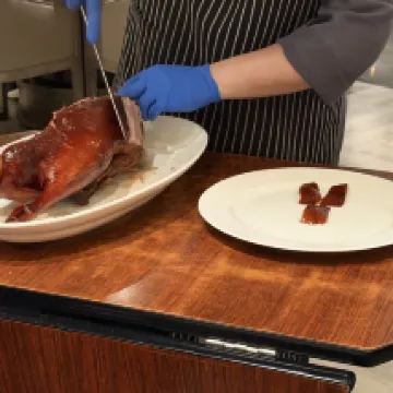 在我家裡旁邊的餐廳,酒店裡的燒鵝蠻好吃的份量很大、口味好,服務也好。