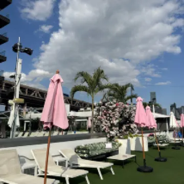 在紐約,價格很划算,景色也很棒。我們訂的是陽台房,非常不錯,唯一不足的是橋上交通噪音。