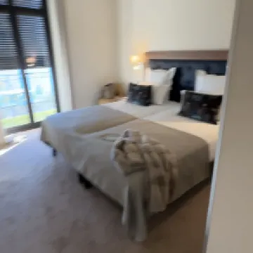 飯店地理位置優越,就在海灘邊。房間很大,浴室和衛生間是分開的,浴缸也很大。我很幸運地住在最高樓層——五樓,視野開闊,可以欣賞日落。早餐也很棒,尤其是在餐桌上點一杯免費的卡布奇諾。飯店設有指定停車場,每天收費36歐元,方便租車遊覽週邊地區。