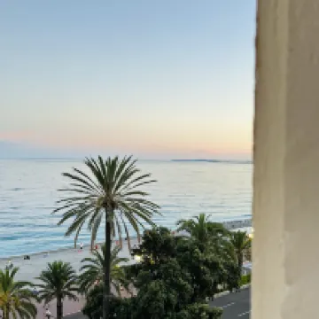 出門就是蔚藍果凍海,每天早起和傍晚都要到海邊坐一會兒。離老城、城堡山步行15至20分鐘左右。尼斯到處都是吃飯的地方,各色飯店都很熱鬧。酒店城景房樓下有一家Z餐廳在google map上評分很高,去吃過2次,是西班牙的taps,味道很棒!生蠔也很新鮮,在南法吃了不少生蠔。酒店後半夜還是安靜的,有時(並不是每天)清晨會有垃圾車裝垃圾的響動,睡眠不好的人可能會受些影響。酒店前台的服務談不上很熱情,一般般吧,淋浴間的地漏不好,但海景位置不錯。整體推薦。