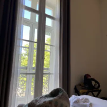 A hotel with a grand and impressive interior that befits the majestic history of Nimes. Location is perfect, right beside the historic amphitheatre. Front desk staff speak good English and were about to give us useful, money-saving tips about parking on a Sunday (namely, street parking is free). Rooms are spacious and well-equipped with the extremely high ceilings a particularly unique feature, lending even the room itself a sense of grandeur. Overall, we certainly felt this hotel was well worth the money spent.