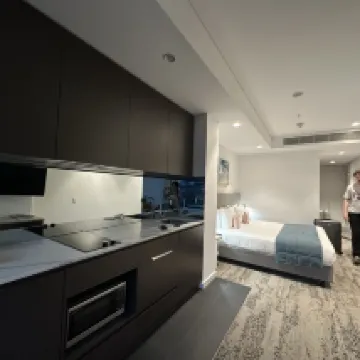 來自住宿之回應: Hi M姐姐,Thank you for your wonderful 10 out of 10!We are so pleaed to hear that you enjoyed the stay with us and apprecaite you sharing the detailed photos of the room.Our OneBedroom apartment would have everything that you had in Studio plus the oven, we hope to have the opportunity to welcome you back again and try our beautiful one bedrooms. Kind Regards,Quest North Sydney Team