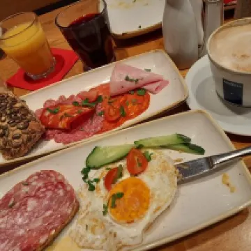 Zum Frühstück u.a. Bio Gebäck! Dusche ausgestattet mit genug Shampoo, Conditioner, Duschgel, Bodylotion, der kl Schminkspiegel ist eine Sensation! Unkompliziert bei An/Abmeldung. Wir konnten alles leicht zu Fuß erreichen. Sauberes Zimmer. Kühlschrank mit Minibar. Kaffeeangebot im Zimmer.