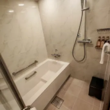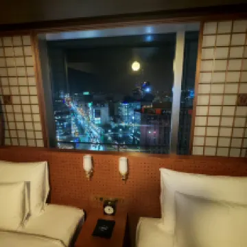 屋顶温泉有其特色,夜里遠眺海湾景色迷人,8樓还有户外日式庭院。很有日本精緻特色。早餐還行,但服务很好。就在車、站旁,非常非常近。