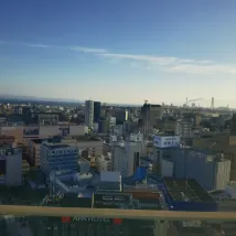酒店位置就在大分JR站前,很方便交通出行。 房間佈局得宜,空間比起福岡市區的酒店大多了。 頂樓的大眾湯池可以看到遠處山、海,不錯! 餐廳窗户看出去是車站商場的頂樓開放式公園,用餐時看着窗外挺放鬆舒適。