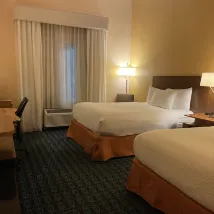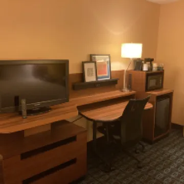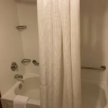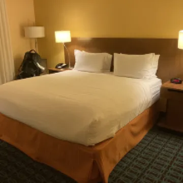 乾淨,舒適,空間安排的合宜,早餐很不錯,健身房相對來說項目不多,24小時開放,接駁車需要打電話去告知,才會來接駁,大約要等待10分鐘接駁車就會到達,距離機場很近,大概5分鐘左右就可以到達酒店。不過現在美國的飯店怎麼都變成這樣,所有的餐具都變成一次性的,覺得對環境很不友善