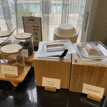 中午前抵達直接拿到房間可以休息很棒,櫃檯人員親切服務佳,有免費早餐但因為清晨班機沒吃到,但有提供香蕉與馬芬蛋糕,24小時提供熱茶與咖啡,健身房還有蘋果,有泳池但是沒使用,附近徒步可達許多餐廳,也有一個商場還算蠻方便的,提供的免費機場接駁車很棒