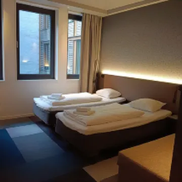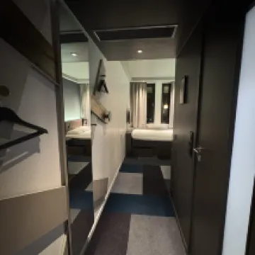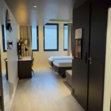 A bit small but fit for two person. The location is great, just a few minute from the central station. The hotel is self-service but there is a staff in the bar to help us for the check-in and luggage storage
