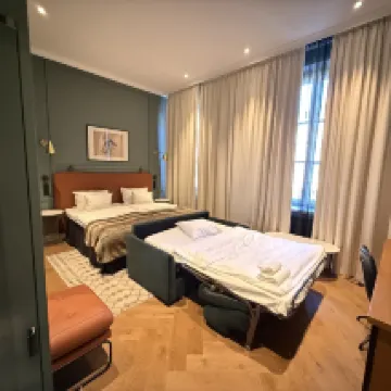 酒店鄰近中央車站及多個景點, 十分方便,多個主要景點可步行而至。酒店設計典雅,保留舊有外貌,但設施富時代感。為遇上熱浪,房內冷氣不足,氣溫達到29度,需酒店借用風扇降溫,這是美中不足的地方。此外,酒店的早餐極其豐富,吃了三天也很滿足。