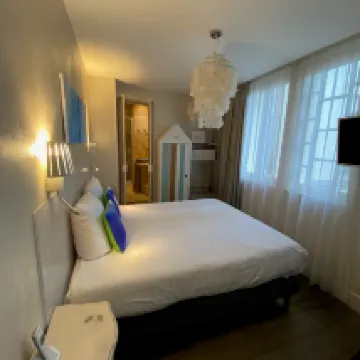 Комната была на 1 этаже, было прохладно и тихо. Кондиционер работал исправно, есть сейф. Матрасы мягкие, высыпались на них очень хорошо. Есть чайник и маленький холодильник. В чудесном дворике при гостинице можно посидеть посерфить если в номере интернет не очень ловит как у нас и перекусить булками с кофе из соседних boulangerie. До многих достопримечательностей можно дойти пешком. Если отметить небольшой минус, то ступеньки на входе, чемодан придется поднимать и нет туалета если сделал чек аут и ждешь свой трансфер.