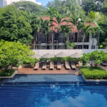 房間非常寬敞、乾淨,安靜,面對內部庭院。然而,你注意到時間的破壞。例如,淋浴時的水從水龍頭中凝結出來。平日早餐僅提供亞洲、美式、歐陸或素食菜單。自助餐僅在週末或鄰近的酒店提供。飯店位於芭達雅北部,距離海豚圈僅 200 米,因此前往市中心的交通十分便利。
