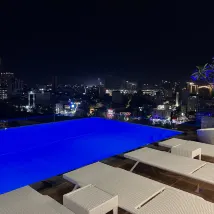很棒的小公寓,非常現代、乾淨。空調運作良好,床很舒服。工作人員超級友好而且面帶微笑!很棒的屋頂游泳池和乾淨、現代、帶蒸汽浴室的小健身房。一定會再入住!