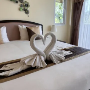 酒店工作人員非常友善!飯店距離卡倫海灘5分鐘路程,靠近水果攤、按摩院和超市。缺點:早餐上午10點開始,需單獨付費(180-200泰銖);以及顏色不是最新鮮的床單和毛巾。否則一切都很好!