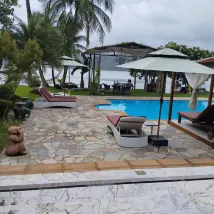 A l écart des bruits et touristes Nous avons déjeuner au calme avec une vue exceptionnelle Très bon très beau Personnel très accueillant Carte très variée Cuisine thaï et européenne excellente Vous serez au paradis Le complexe hôtelier a l air de très grande qualité