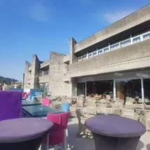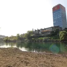Un hôtel historique et iconique. Proche à pied de tout ce qui est intéressant , Très bonne situation dans un quartier tranquille (fuyez les hôtels placés le long des boulevards bruyants) et au-dessus de la rivière pour les plus chanceux en chambre aux numéros impairs. Terrasse du restaurant et terrasses individuelles des chambres pour profiter du lever du soleil. Excellente literie; Chambres et couloirs dans leur jus des années 60, ne faites pas attention à la moquette tâchée par endroits, mais observez les photographies exposées (d’ailleurs en ce moment en mars 2022 au musée Muzeji i Galerije ouvert jusqu'à 20h, il y a une rétrospective de la célèbre architecte Svetlana Kana Radević qui a construit cet hôtel styme yougoslave moderniste). Petit déjeuner un peu quelconque mais correct. Très bons plats servis au restaurant et au bar; mais la lenteur du service m’a obligée une fois à partir après 30 mn d’attente pour des crèpes jamais arrivées. Très bon accueil et service.