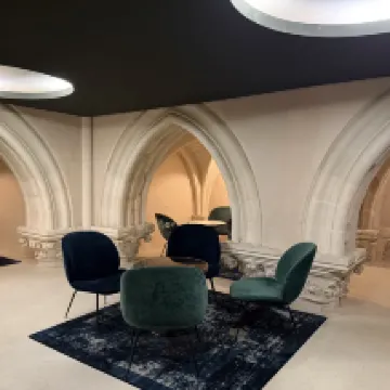 Une rénovation spectaculaire de cette ancienne église devenue ensuite Archives départementales. Dormir dans cette chambre avec une mezzanine dans laquelle chapiteaux et colonnes ont été savamment intégrés et scenarises est bluffant. Qualité de la prestation et insonorisation absolue sont en parfait écho. Et que dire de l’accueil chaleureux et professionnel, en harmonie avec les lieux. Au restaurant, effet waouh assuré tant pour la luminosité conservée sous cette splendide hauteur de plafond que pour les pièges à son, à l’instar des églises romanes, captant les bruits et permettant, y compris si toutes les tables sont prises, de pouvoir discuter sans ce gêner. Pour ma part, un petit coup de cœur pour ce poulpe aux ravioles de champignons et à la sauce subtilement citronnée servie avec le sérieux et la petite pointe d’humour seyant à une grande table. Vraiment, un très beau séjour poitevin 🙏🙏