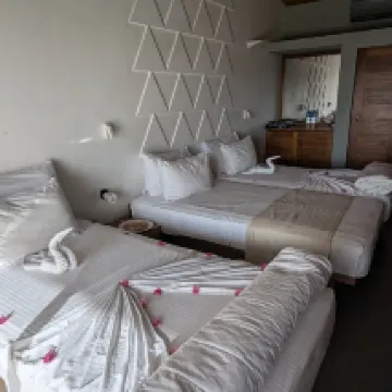 Отель выбирала из-за вида! Он конечно очень прекрасен. Вечером был красивый закат. Номера очень простые, но на одну ночь было нормально. Еда не понравилась, морепродукты зажаривают до состояния чипс, рыбу кушать было невозможно, а вот десерты были ничего. Завтрак тоже не понравился. Но это все компенсировал шикарный вид.